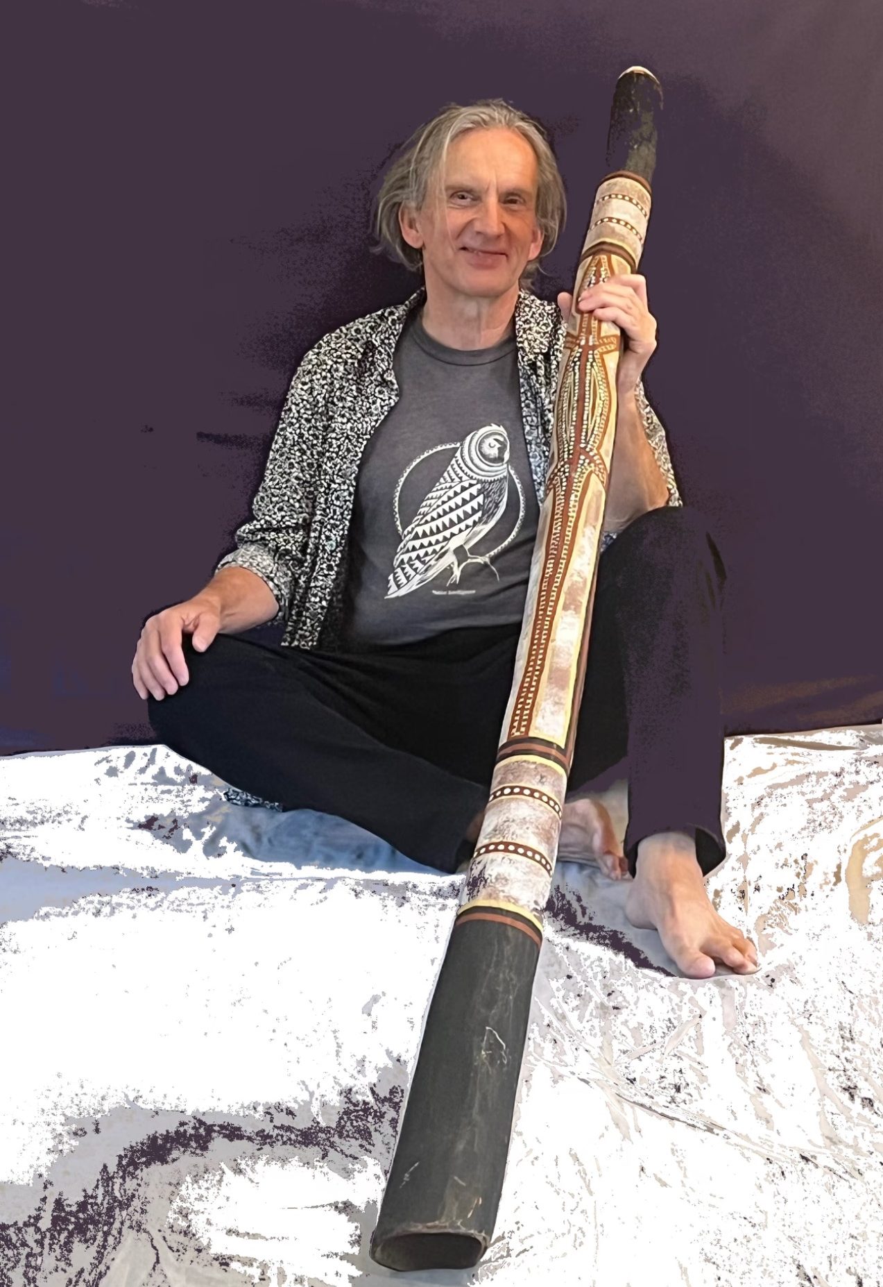 Born in England, he has pioneered the modern day use of the ancient Australian Aboriginal instrument across multiple genres, based at various times in Australia, UK, Spain, San Francisco Bay Area, and Hawaii . He has performed in five continents and recorded a catalog of over 30 CD releases spanning 1988 to the present. This includes eight solo works, and multiple collaborations with group projects including Lights in a Fat City, Trance Mission, and, most recently, The Sky is in Love With You